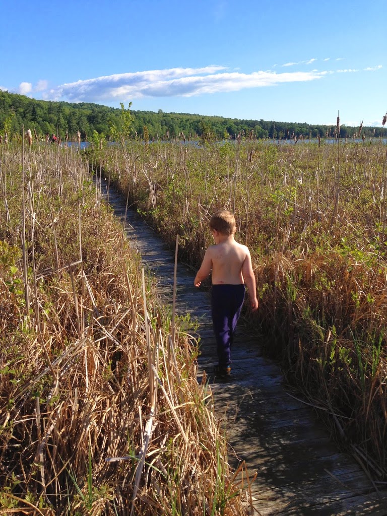 And of course, with both of my children having medical conditions that allow for the possibility of them dropping to ground at any moment and requiring an ambulance, it is not always easy, or right, for me to just let them wander off for long periods of time. But Ruby found a tree to climb almost within earshot, and Edward found a dog to bother, right where I could see him. Everything was fine, until they discovered the secret path to the pond.