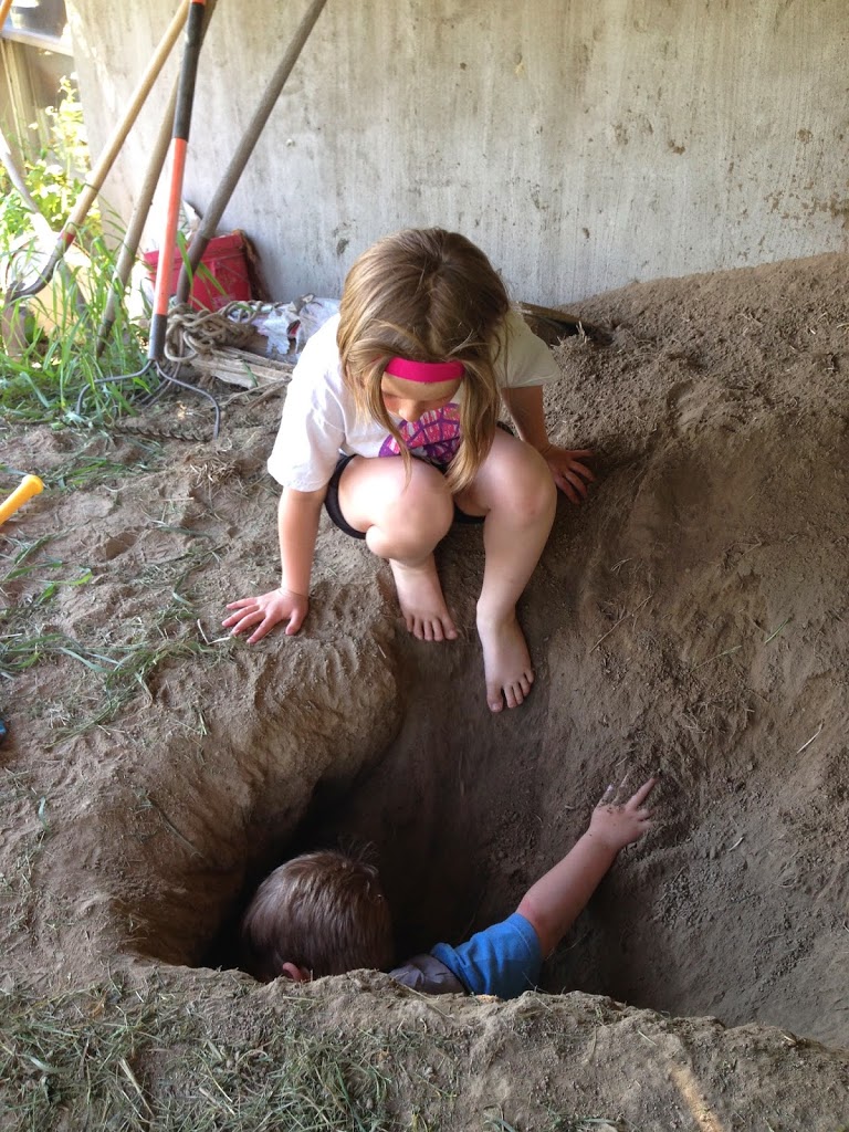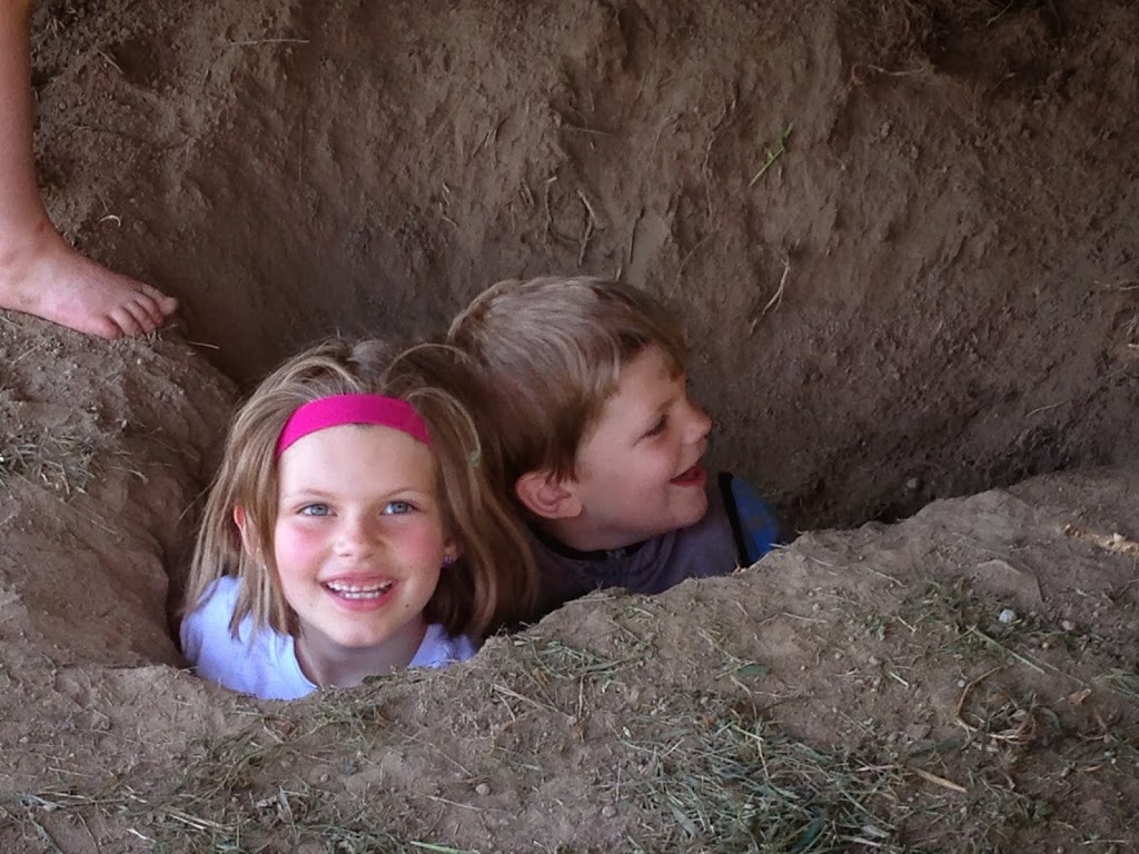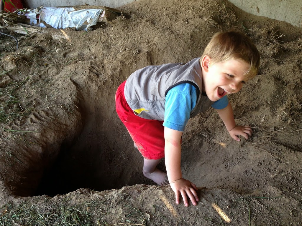 “Yes! Go in the hole! Have fun!” It was great. Kids off being kids, just like in the good old days. The grown-ups could chat and eat and laugh and play frisbee, while the children got to meet other children and then try to bury them in a pit. Perfect.