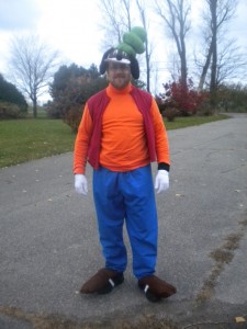 And finally, I went as Goofy.  Other than the fact that my hat weighed four thousand pounds and I could not move my head all night, I think it was a very successful costume.  She made the vest out of a t-shirt, and the pants are actually scrubs!
