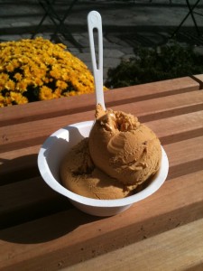 So far, this is the only truck I have been back to twice.  The second time I got the mint chocolate chip, but it was too dark to take a picture.  I’m glad I went back.   I liked the mint even better than the pumpkin.  Of course, even though this was the first thing I ate that night, it was not the first truck I found.