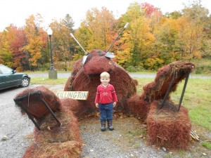 We crammed into the car, me, my wife, my daughter, my son, and one of my daughter’s friends from her kindergarten class, and started the hour and a half to two hour drive down to the festival. Now, when I say festival I do not mean the sort of festival that might immediately spring to mind. The Killington Hay Festival is basically a collection of giant animals made out of hay that are scattered around the town of Killington, VT, and each giant hay animal (or Haynimal, as I have just now nicknamed them) has a trivia question attached to it. As you travel along this scavenger hunt of hay, you take pictures of the haynimals and find the trivia answers located at each stop and then you can turn in your form for a chance to win some unspecified prizes. And that is pretty much all there is to the festival. Supposedly there was a corn maze somewhere, but we never found it.
