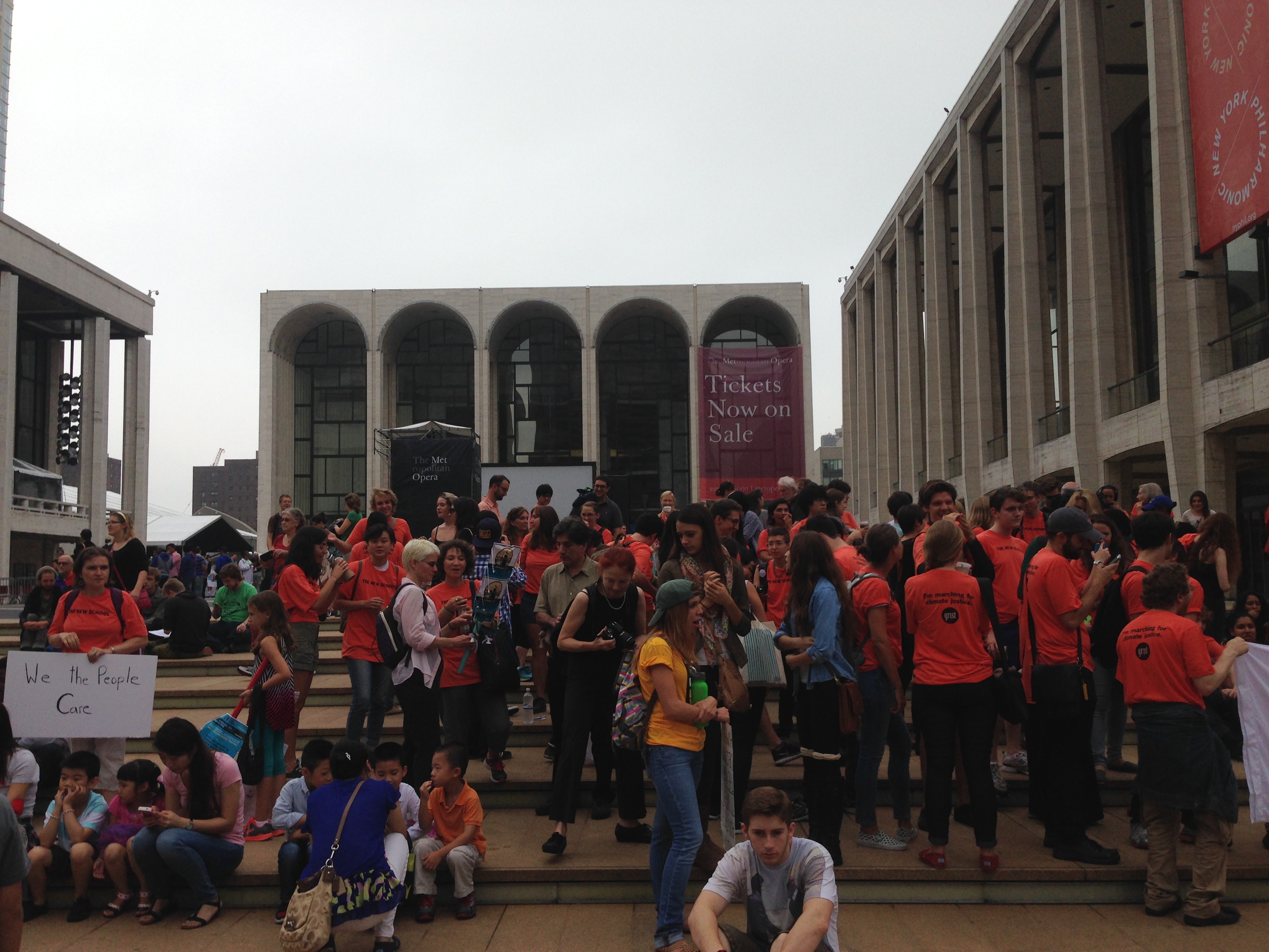 The three of us started off marching down Broadway, meeting plenty of other marchers as we went. I wanted to show my mother where I had worked during my gigs at New York City Opera and The Met, so we followed the crowds down to Lincoln Center and I was very happy to see the place flooded with concerned citizens. It was exciting. You could feel the energy of the crowds, and, according to my non-research, the march was starting at Columbus Circle and then, since I had heard that the march was timed to coincide with the U.N. climate summit, on to the United Nations. We made it to Columbus Circle just fine, except my mother needed to find a restroom, and they all seemed to be across the street. And the street was barricaded and blocked by police officers.