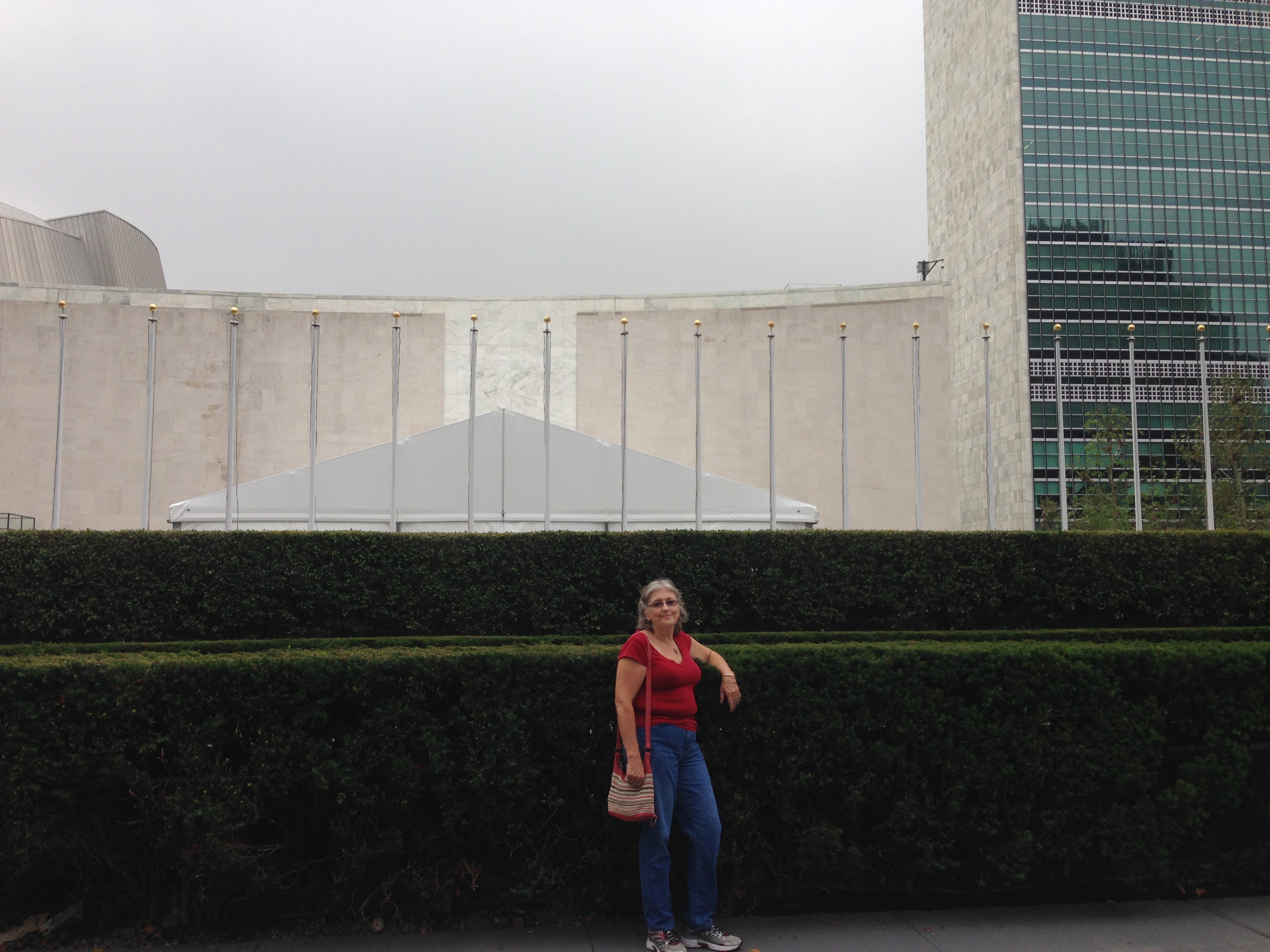 It was strangely quiet at the United Nations, and there were no flags flying outside of the building and, more importantly, no marchers. We thought that, even with our Lego delay, that maybe we just beat everyone there. So we waited. We took some pictures. We sat and watched for the marchers who would be coming around the corner aaaaaaaany second…