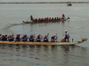 Yesterday, as we struggled through traffic on the way to church and then struggled further to find a parking spot where parking spots are usually plentiful, it occurred to us that we were in the midst of the dragon boat festival.  As I was very curious to see flying boats that shoot fire, we decided as a family that, after church of course, we would go and check it out.