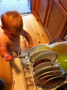 The only potential problem that I could have envisioned with Edward unloading the dishwasher (aside from the fact that he cannot reach the cabinets) is the smashing and complete destruction of every one of our dishes, but I felt that, by closely monitoring him and assisting as needed, I could take care of that problem. There was just one issue that I hadn’t counted on when I started letting Edward help with the chore.