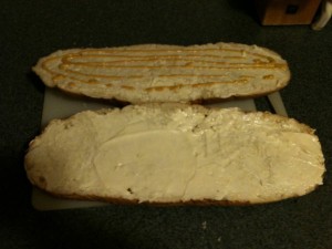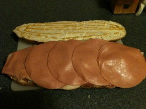 Now I normally only make this sandwich for the Superbowl, but as I was not home on Sunday, I had to make it last night, and the best part is, I can have it tonight too! Yum-a-rum!