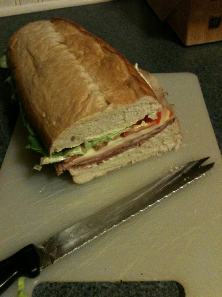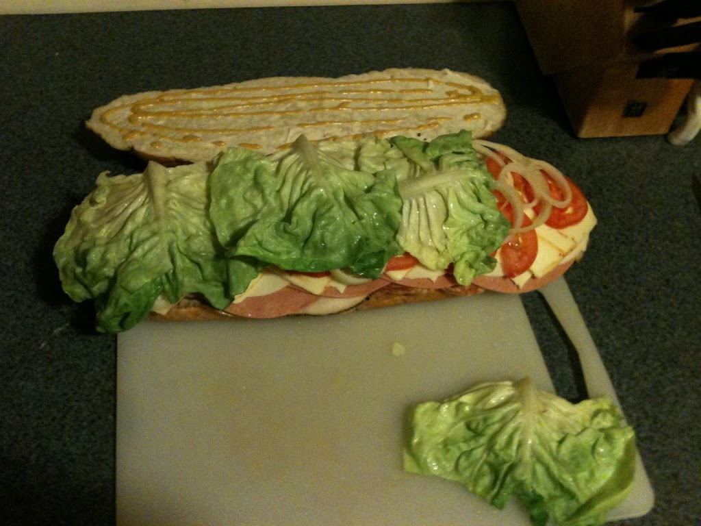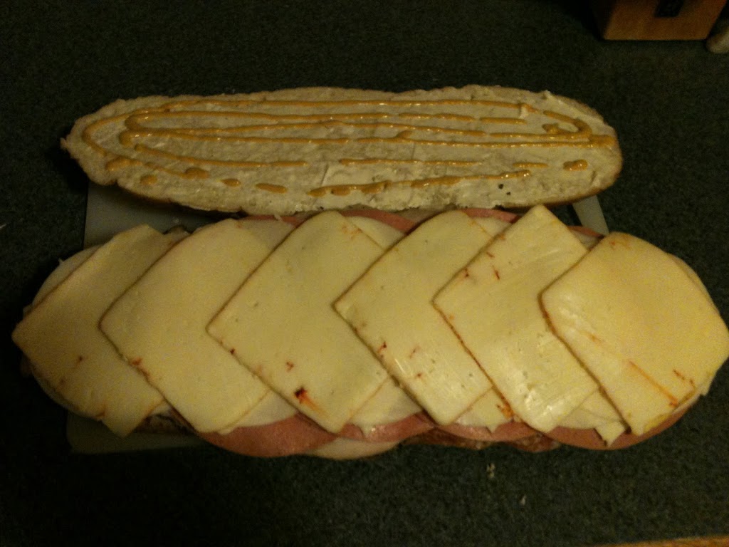 Now I normally only make this sandwich for the Superbowl, but as I was not home on Sunday, I had to make it last night, and the best part is, I can have it tonight too! Yum-a-rum!