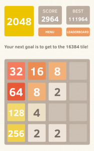 I’m not going to say that this is the perfect method for getting the highest score possible, because I don’t know if that is true, but I do know that, if you use this method correctly, you will always get the 2048 tile, and often the 4096 tile. And the method can be summed up, in it’s very basic form, as “NEVER GO RIGHT.”