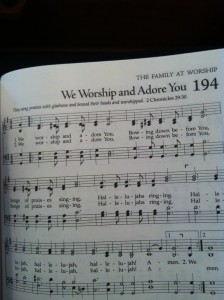 But then we moved on to our next hymn, entitled “O Come Let Us Adore Him.” Here it is: