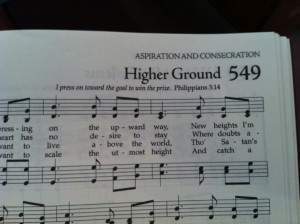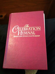 I was visiting my Dad in Maine this past weekend, and we headed to church Sunday morning like we always do. Since he is the pastor, they notice pretty quickly if he skips a week or two. He is a Baptist minister, but at home we go to a Methodist church, and so his church uses a different hymnal that the one I am used to. In fact, since his current church is a “community” church, I don’t even think they have the standard Baptist hymnal that I have seen around either. They use what is called “The Celebration Hymnal.”