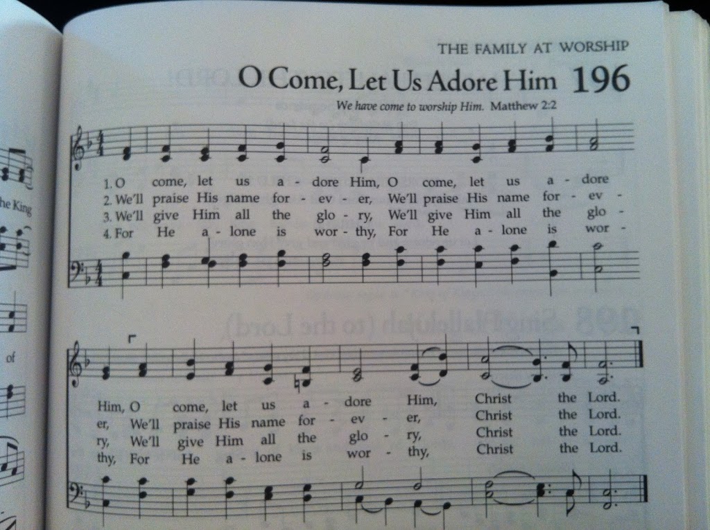 But then we moved on to our next hymn, entitled “O Come Let Us Adore Him.” Here it is: