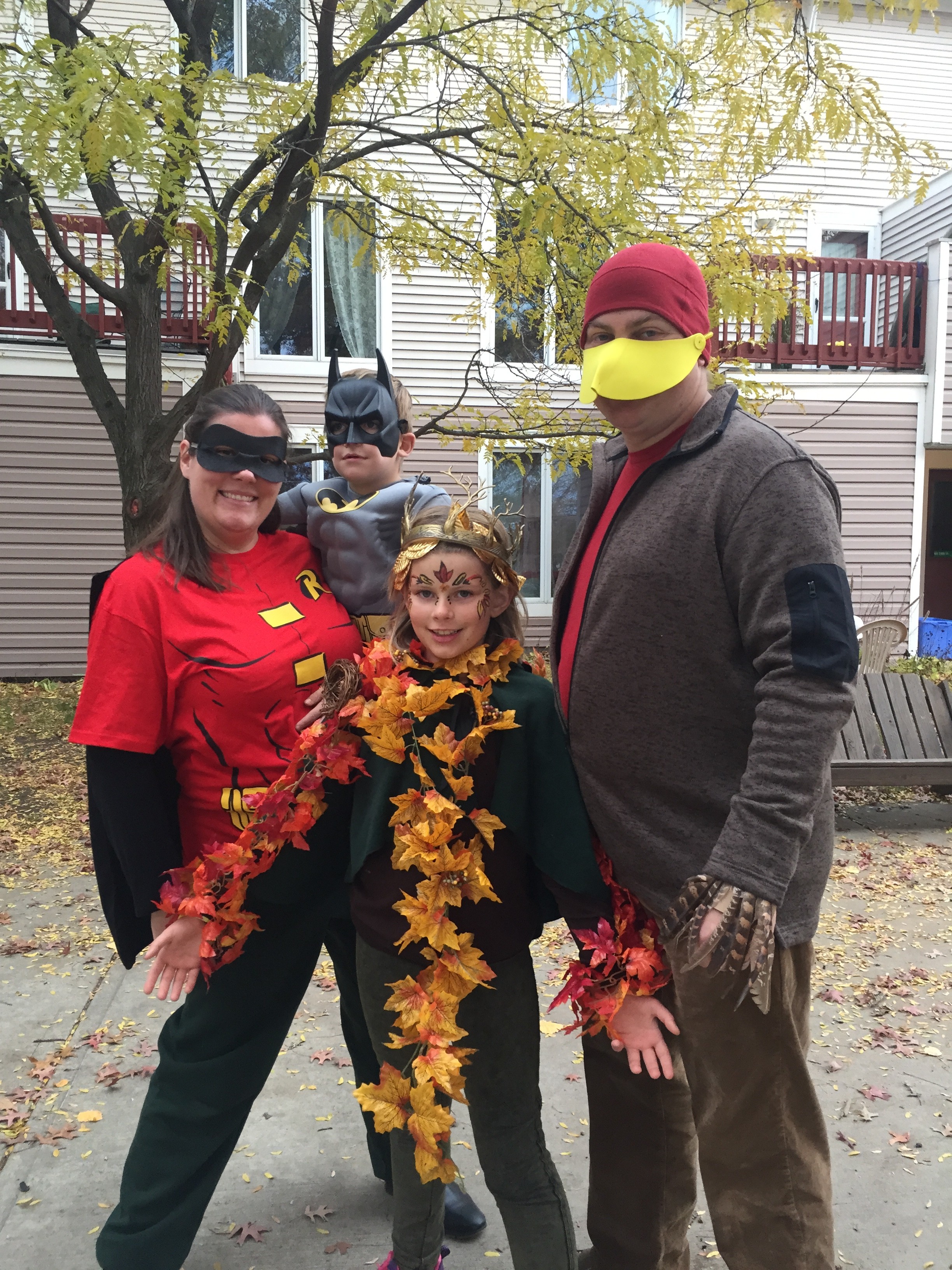 Hope was slim and fleeting, but we grasped onto it as best we could and began to decorate for the party. I had a new disco ball that I hung from the ceiling, and of course I needed to give the lava lamp plenty of time to heat up and get going, so we hung spiderwebs, strung lights, and arranged our decorations all over the community room. Everything was ready except for our costumes. Since Edward was being Batman, he wanted my wife to be Robin. Ruby wanted to be a tree, and decided that I too should be Robin. Well, a robin anyway.