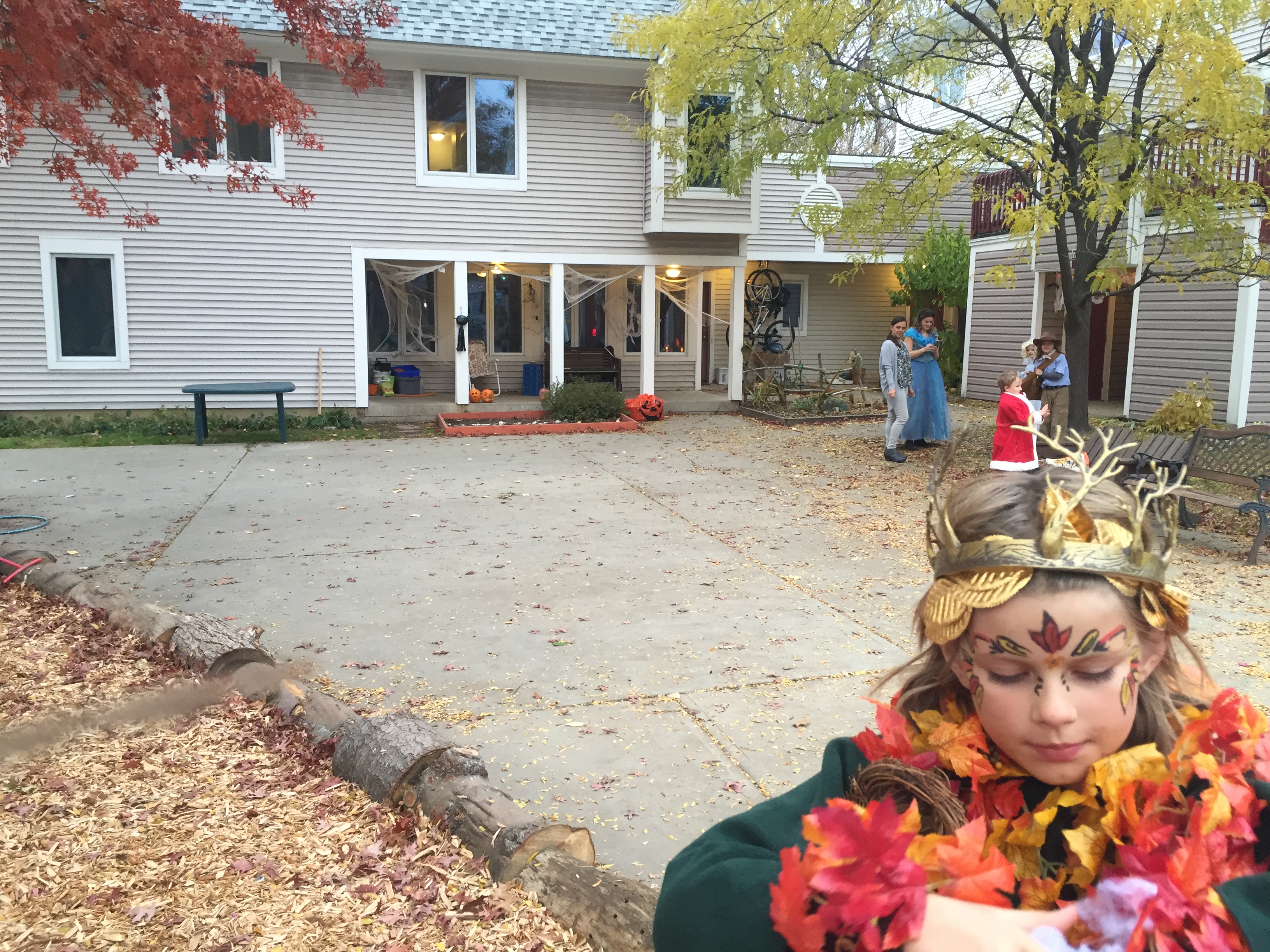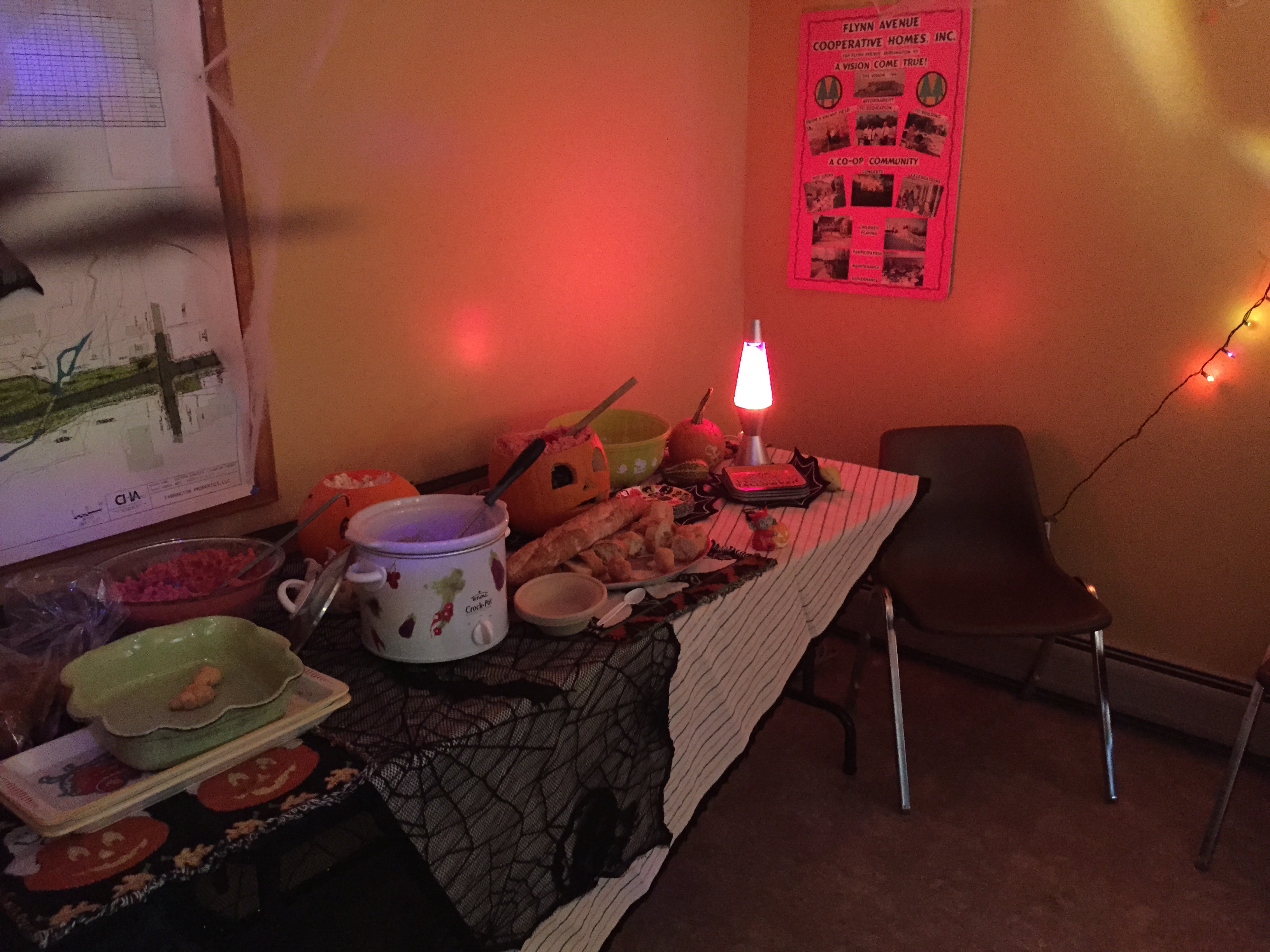 We got our costumes on and tried to get ready for fun, making sure to point out our cool new lava lamp to everyone in attendance. In fact it was the brightest thing in the room, and if you look closely at the picture below you can see it in the center of the photo, shining brightly across the whole courtyard through the window.