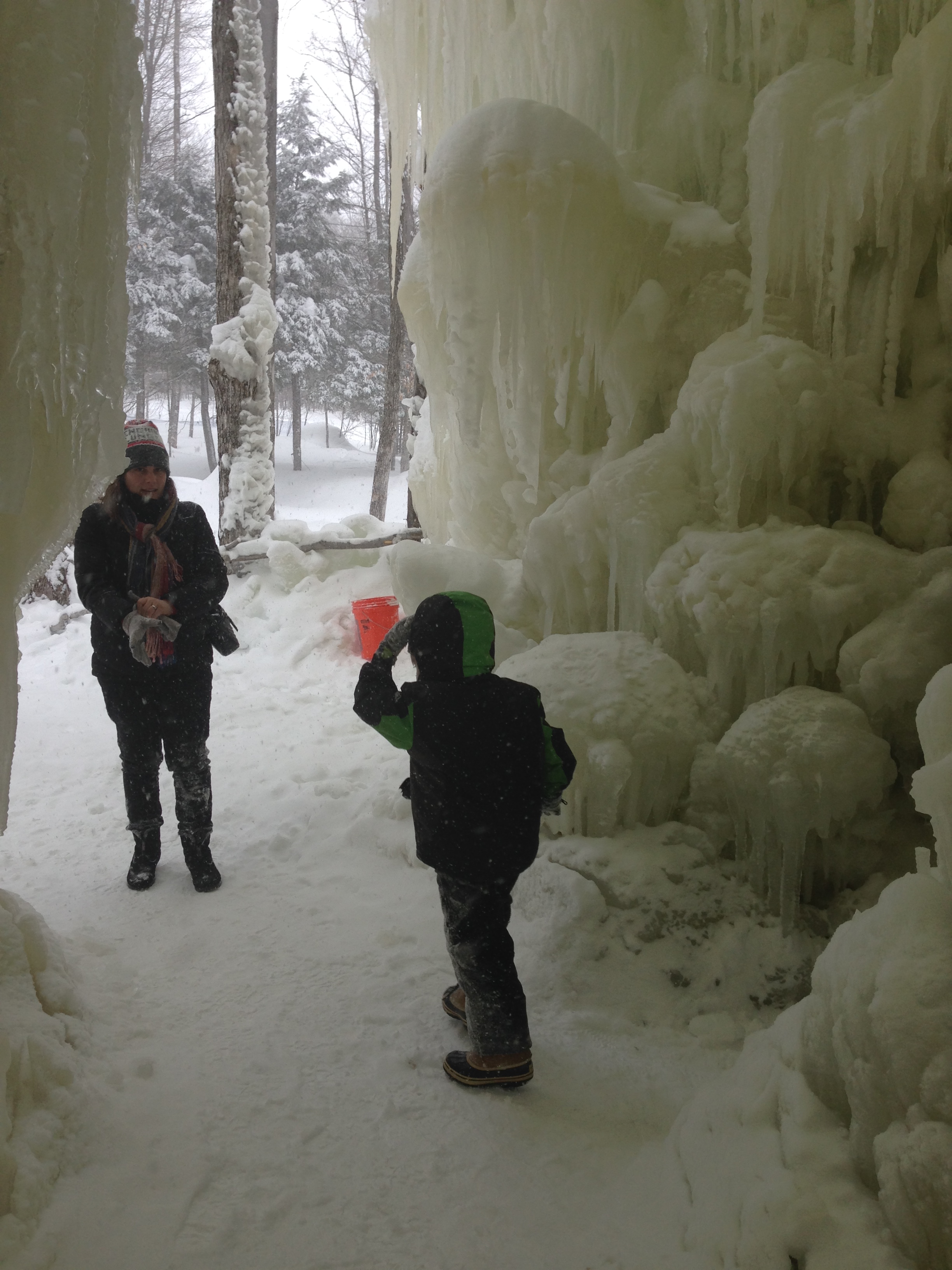 We walked through the ice arch and around various ice pillars, and were very excited to find an ice cave. This was the favorite part for the children. Ruby ran through it over and over again, and Edward sat in the middle of the ice cave for quite some time, “guarding it.” From what? I wasn’t sure. But he definitely growled at some people.
