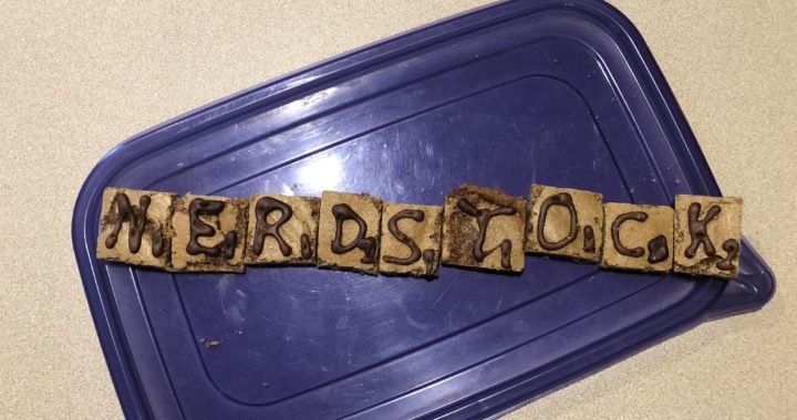 As always, the most important question of Nerdstock is what nerdy desserts I am going to bring. It’s always hard to top the year 1 cupcake challenge, or the year 2 dragon, but I do try. There were the zombie cookies, which I liked a lot, but this year I decided to try for a more game-themed culinary experience. After all, Nerdstock is the annual gathering of the finest nerds known to my brother-in-law, a four day extravaganza out in the woods where we play board games, videos games, lawn games, mind games, and whatever else we can find to play. So we needed gaming desserts.