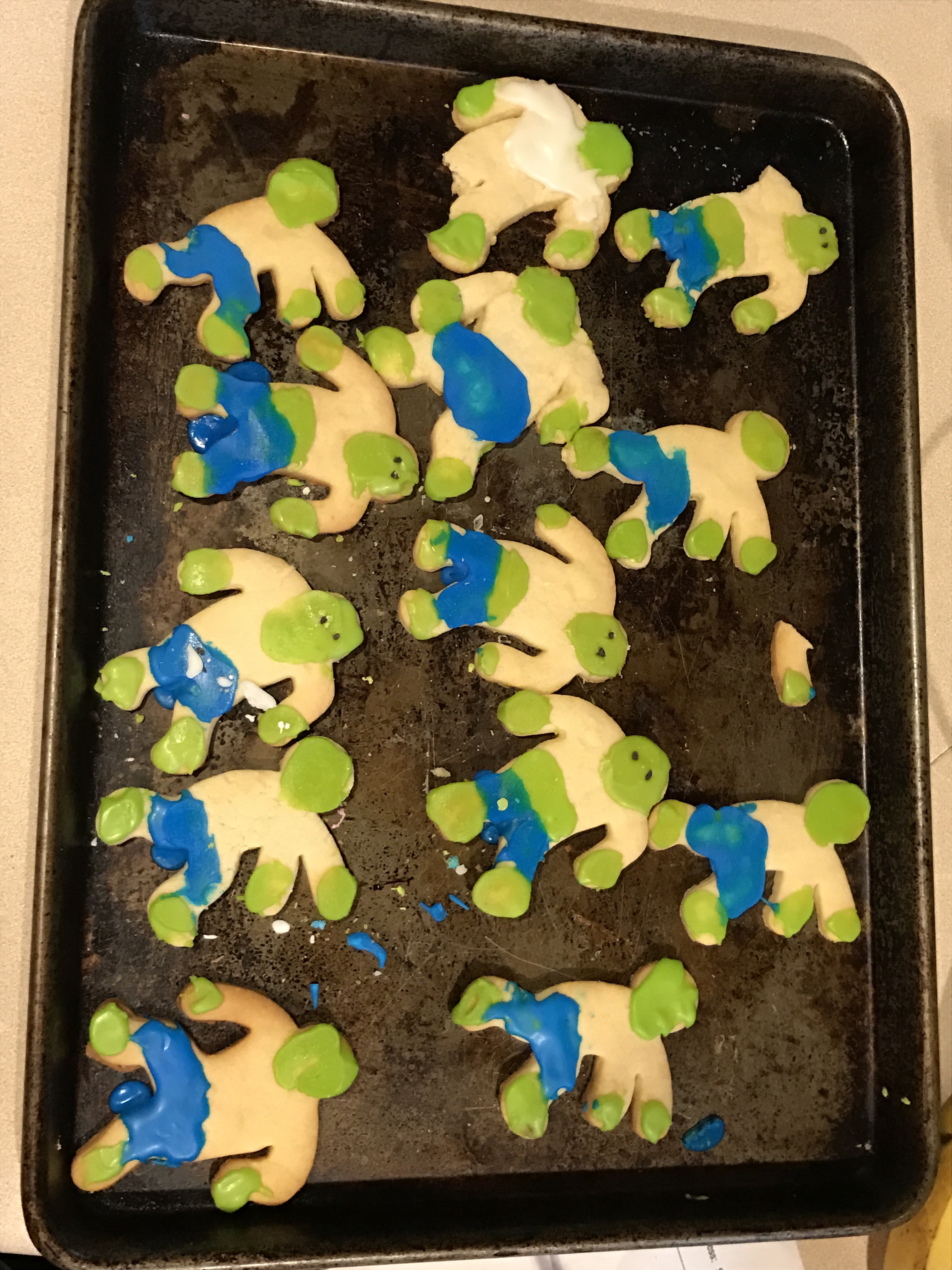 My job, as usual, was to bring dessert. And I had a great plan for making some very detailed zombie cookies. The only problem was, I was off by two hours in regards to our departure time. I was just starting to frost the cookies when I got the call asking where I was. Whoops. So the zombies didn’t all get faces, and they didn’t all get shirts, and they didn’t all get pants, and none of them got the little details I was going to add. Luckily they were delicious, so nobody complained too much.