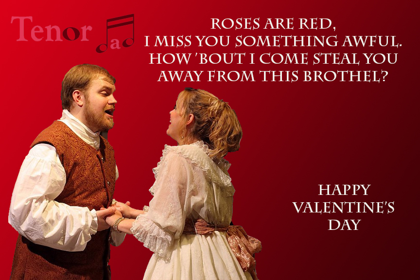 For those of you who enjoyed my Opera Valentines round one and, last year, round two, I have added six more to the collection. Have a loving, lovely day, and send this delightful sentiments to your opera loving paramours and courtesans.