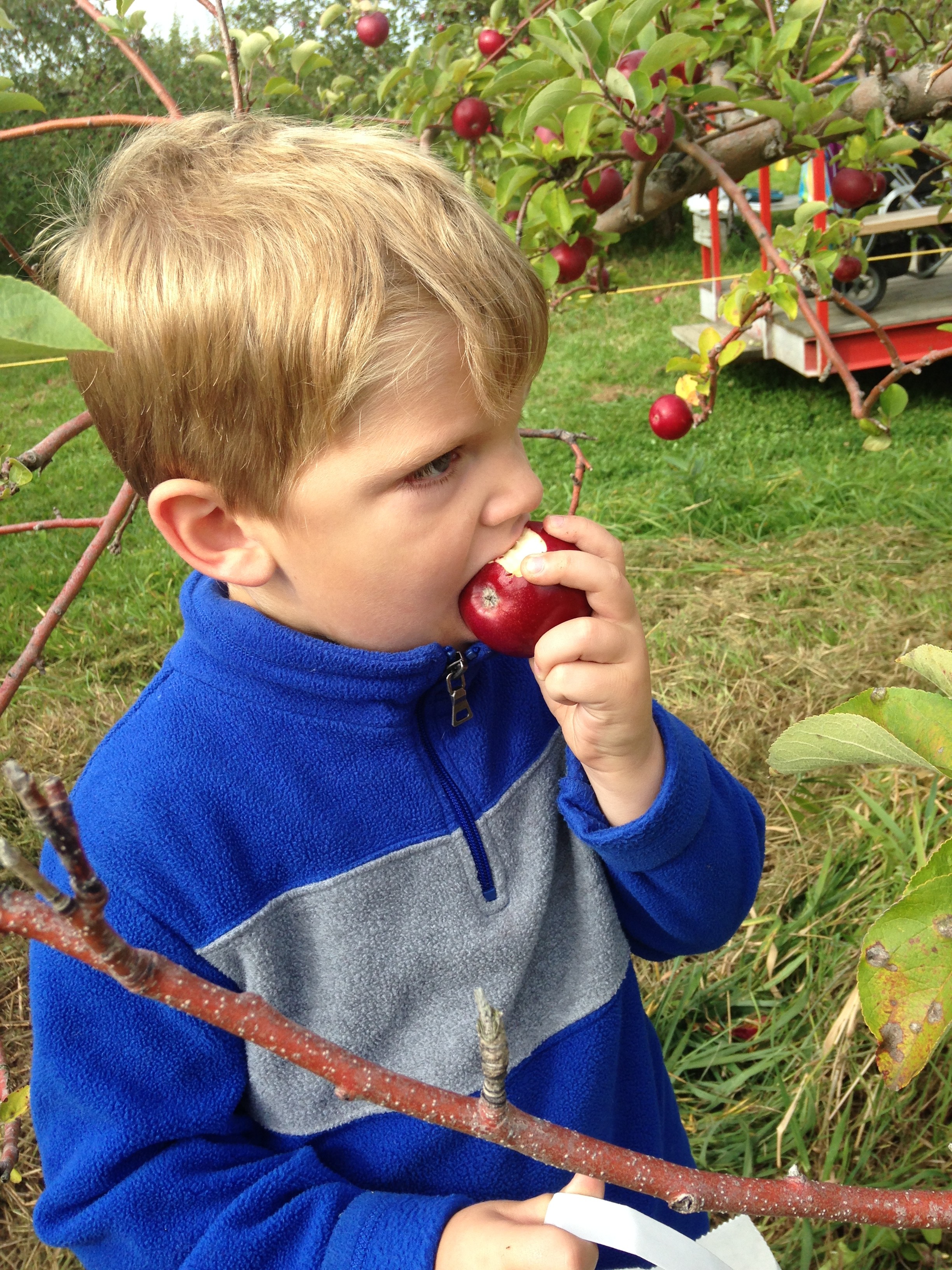 I was away, as I was for most of September, and my wife texted me this picture of him eating an apple on a field trip: