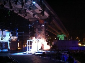 We did finally find some food, although it seemed very expensive to us, and when we were finished we decided to go find the free Cirque du Soleil show that happens every night in the city. That’s right, you read me correctly. A free Cirque du Soleil show. I don’t know who is sponsoring this, or how it all shakes out financially, but they have set up a big stage underneath the highway overpass in an empty space that looks like it probably once held nothing but broken glass and illegal activity. This is urban development at its best. Whoever had this idea is a genius.