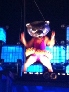 The show was about an hour long and was full of everything you might expect from them, including the most amazing trapeze act I have ever seen. I all can say is, two girls: one trapeze. They also had trampolines, bicycles, ropes, poles, and a man in a tutu with a giant bear head (or was it a cat head?) on rollerskates. In short, it was fabulous.