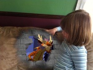 9) String Augmented Reality Showcase – This takes a little more work, but is pretty amazing. You print out on pieces of paper some images from their website, and then when you point your phone at those images, 3D stuff starts to happen. Our favorite is the dragon, which flys around your house. You can take pictures of it too. It’s free and it looks like this: