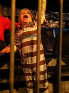 In a case such as this, when you are at a long and fun event that takes place late in the evening on a day when your children are exhausted, there is only one thing to do. I went right to the cotton candy stand and sugared them up good. This worked well for most of the evening. Edward spent his time running back and forth, up and down our row yelling and pointing at things that may or may not have been there, and Ruby stared wide-eyed at the acts that were being performed in front of her.