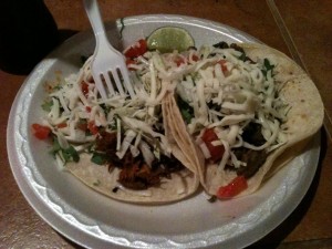 I decided to get two tacos. I really just wanted the carne asada, but they claimed to have a 5,000 year old Mayan recipe for Cochinita Pibil taco, so of course I had to try that too. These tacos were pork tacos, marinated in achiote and bitter orange then wrapped in banana leaves and slow roasted in a smoker. At least according to the menu. Now, I don’t know what an achiote is, but regardless, they were delicious. Those Mayans, right?!