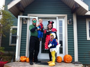 This year Ruby was invited to a trick or treating party at her friend from school’s house.  I had conflicting emotions about this immediately.  Of course I was excited that Ruby was invited over to a friend’s house.  But on the other hand, we always go trick or treating as a family.  Was this just the beginning of the end?  Would she be off on ski vacations for Christmas and spending her birthday on Maui next year?  Well, maybe not, but it did set off the signal in my head that she was starting the transition to having a social life that did not include watching “Mickey Mouse Clubhouse” with me.
